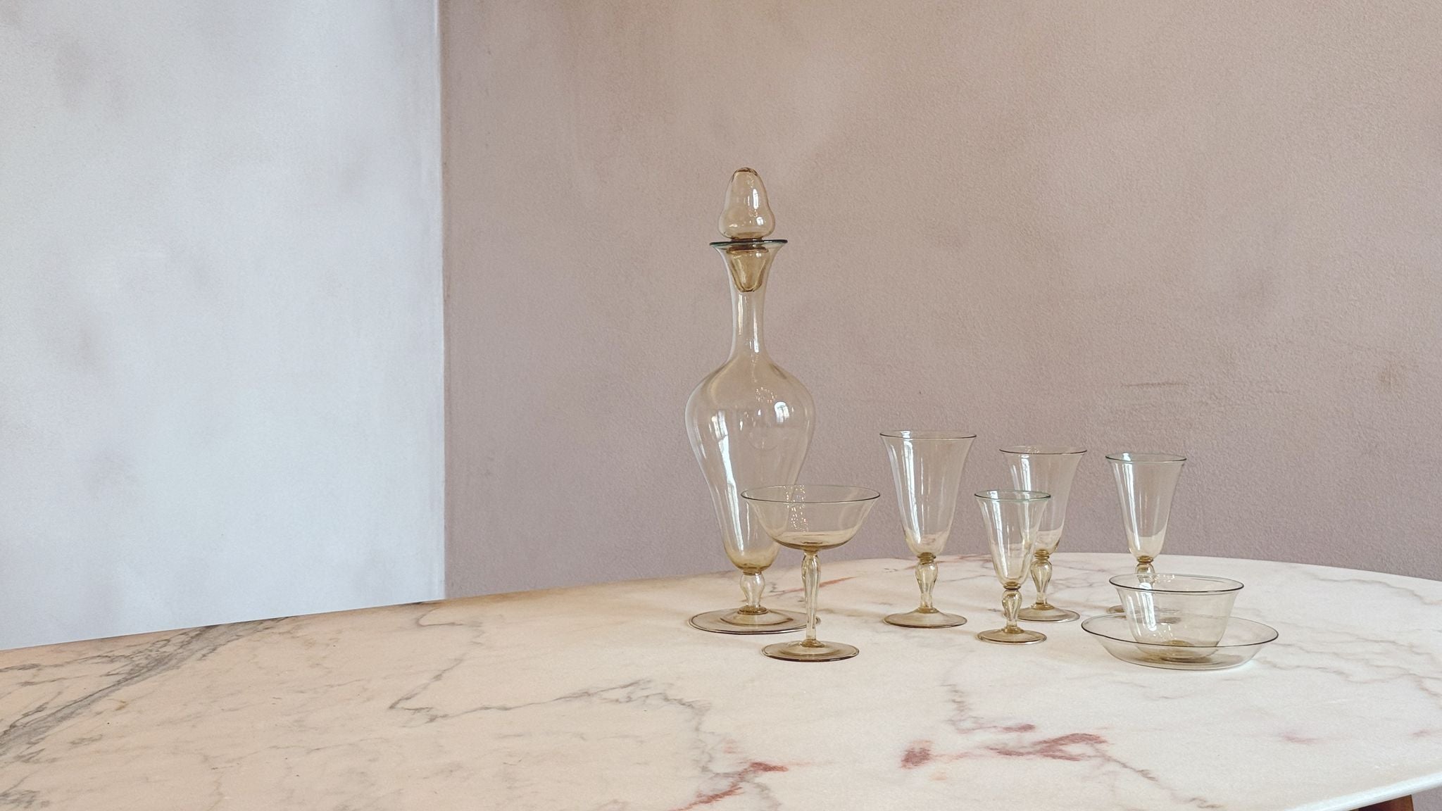 1940s Murano Glass Three Piece Wine Glass Set (Red, White, Dessert) - 30 pieces