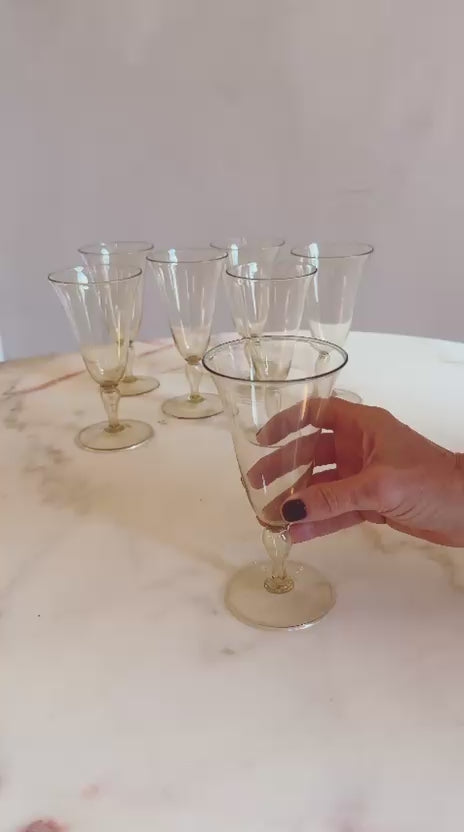 Note these glasses are part of a larger set of glassware including wine glasses and decanters, also available on our website. The set was found in a private home in Rome, where it had belonged to the same family since the 1940s.