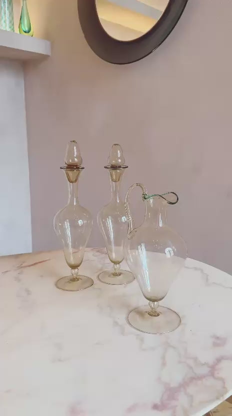 Pair of 1940s Hand-Blown Murano Glass Decanters & 1 Water Jug