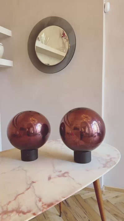 1950s Pair of Giant vintage Burgundy Mirrored Balls