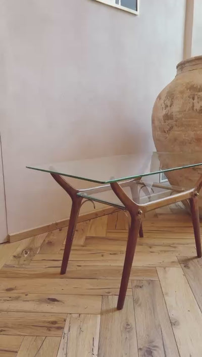 1960s Italian Wood & Glass Side Table