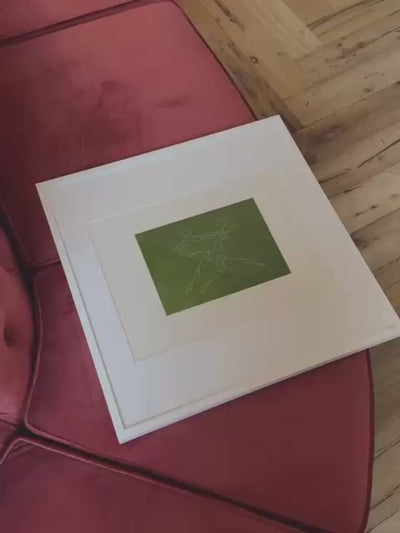 White on Green Abstract Dancers Lithograph, by the artist Anna Romano in 1976. From the 1960s onwards, Romano's work was noted for its geometric forms and intersecting curved lines. I was lucky to find a set of her Lithographs reflecting these. She was born in Florence in 1912 and died in Rome in 1994. The lithograph comes with the frame - please let us know if you would like us to send it without the frame.